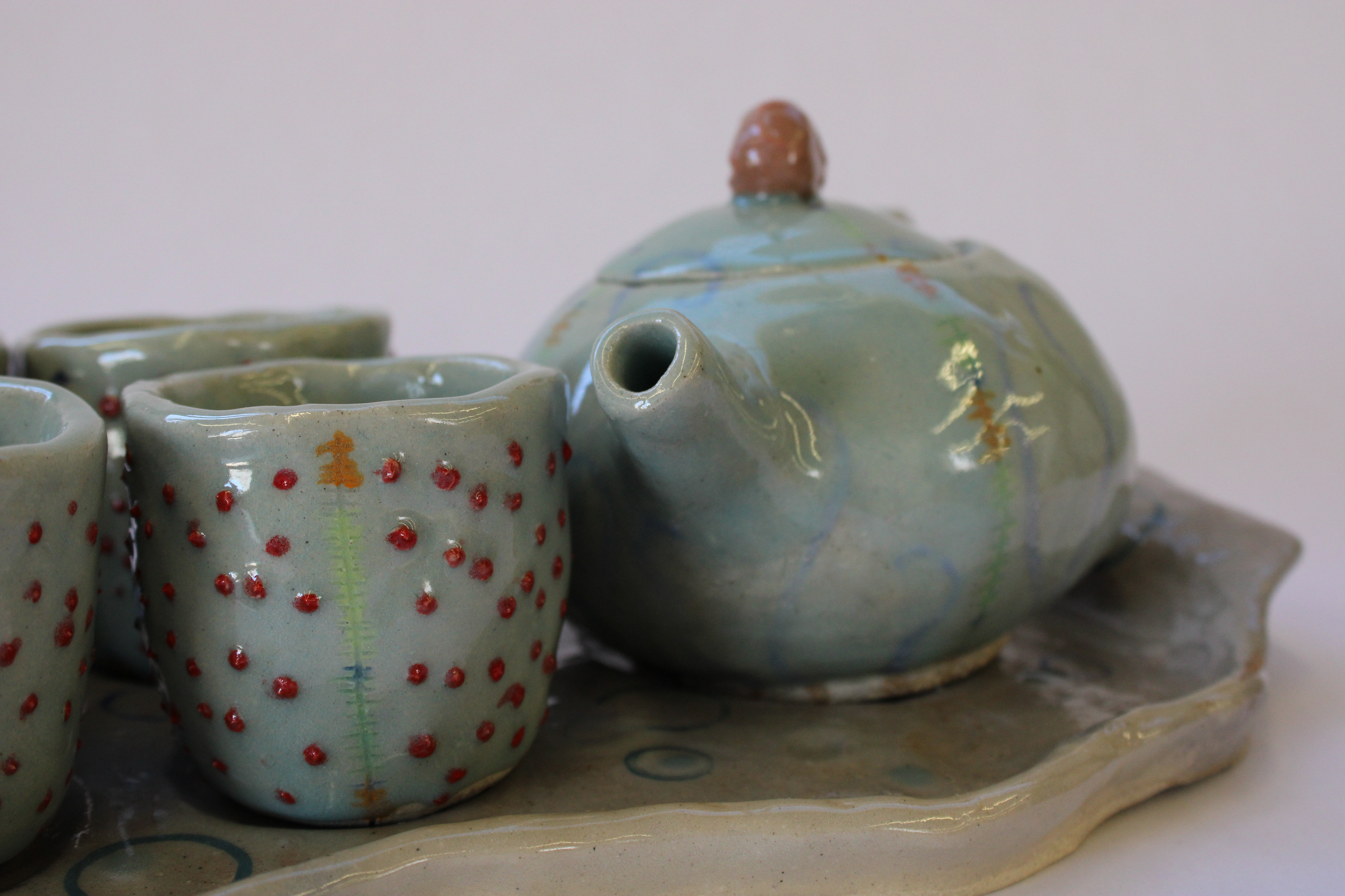 A tea set inspired by the spotted comb jellyfish, named Leucothea pulchera after an ancient Greek mythological sea goddess.